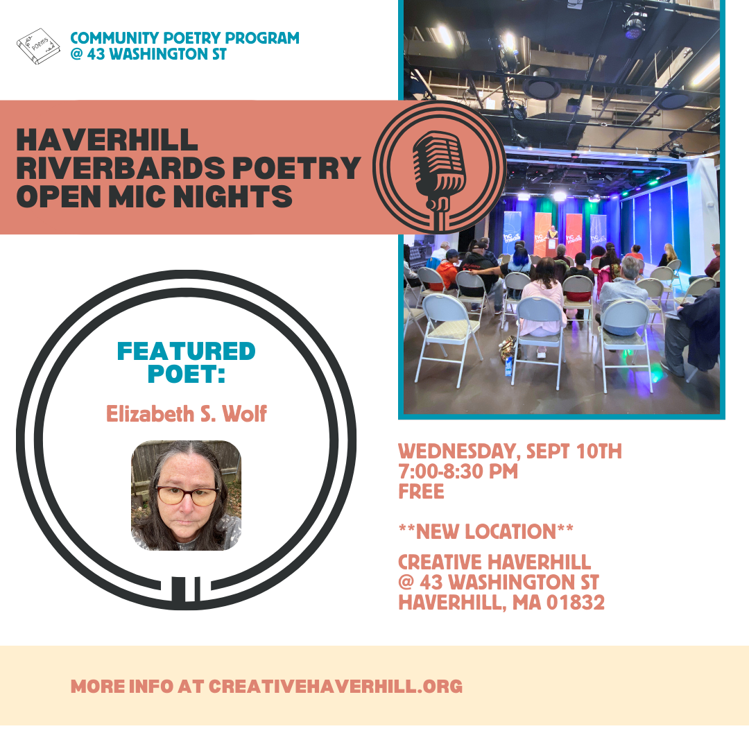 Haverhill's River Bards are a group of local poets with a passion for shining a light on poetry, prose, spoken word, and other literary arts! Twice a year the Bards present a once-a-month poetry series in collaboration with Creative Haverhill. This poetry series features readings by fantastic published poets, followed by open mic readings. These events are family-friendly and open to the public. The poetry series is now being offered at Creative Haverhill’s new downtown Haverhill location – 43 Washington Street!